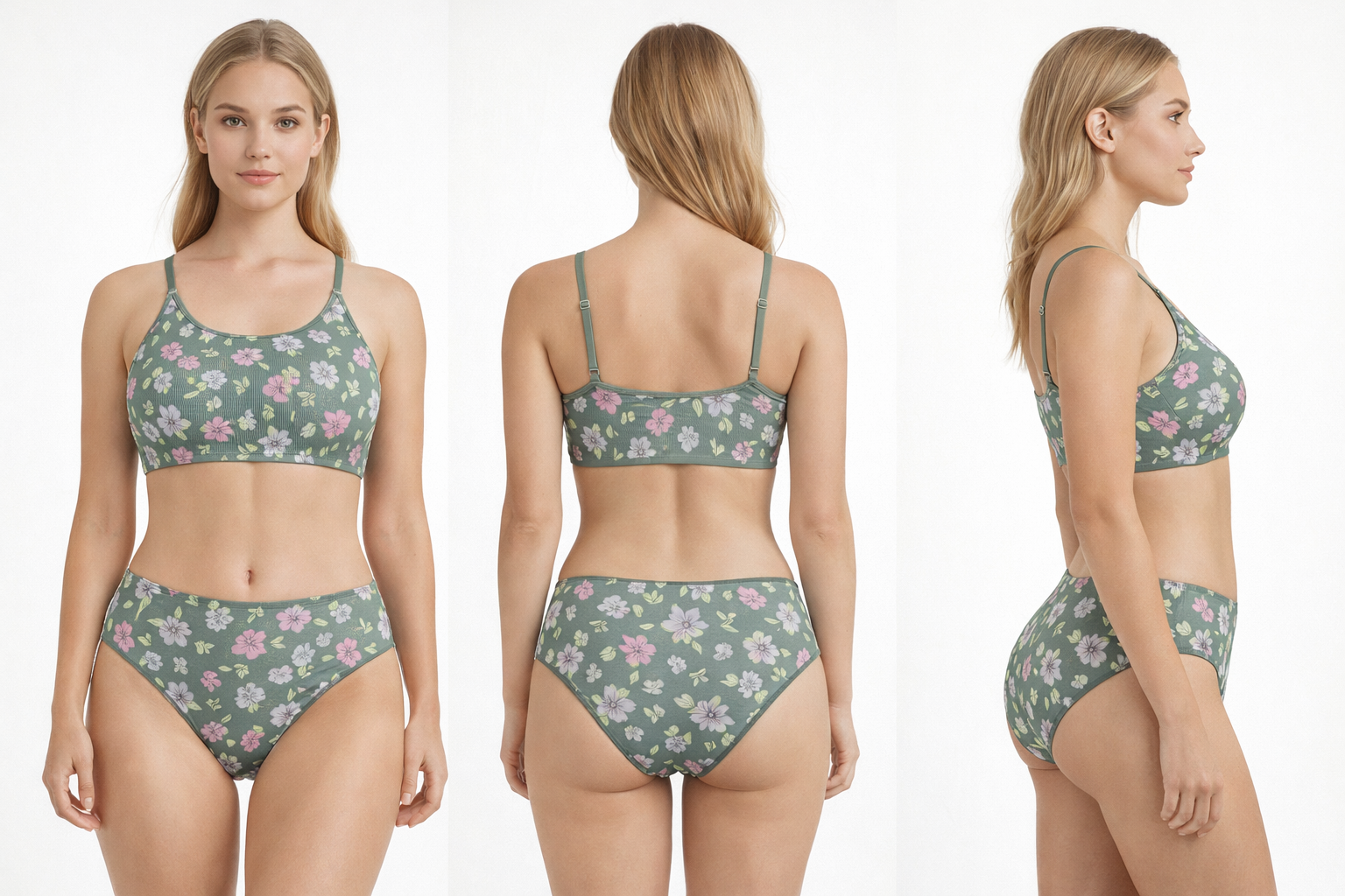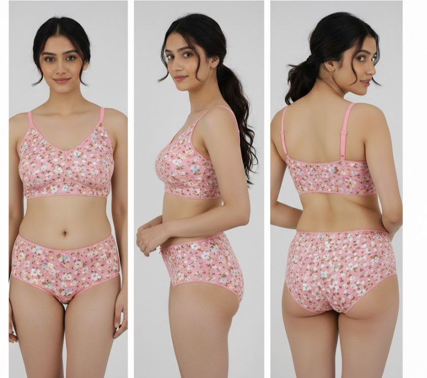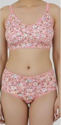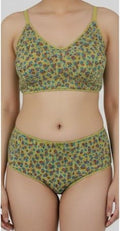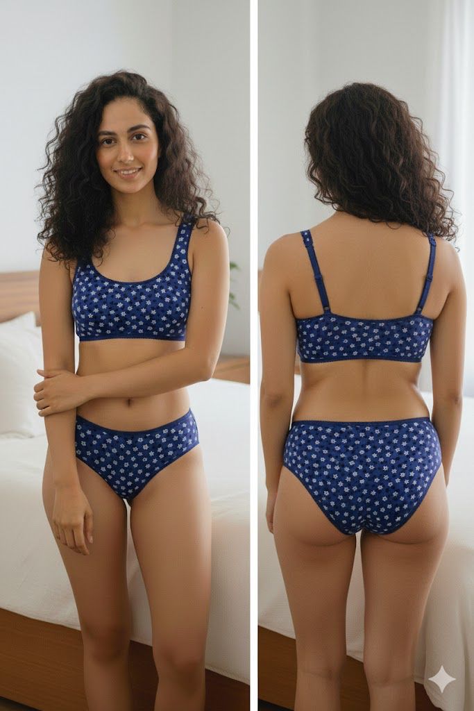 The Tropical Night Set is a fresh blend of comfort and charm — featuring a soft Kangri Bralette paired with a matching mid-rise brief, both crafted in breathable Printed Modal Lycra. The delicate floral swirl print in deep tropical tones makes this set feel playful yet elegant. With soft stretch, lightweight feel, and a smooth finish, it’s the perfect everyday set for comfort queens.