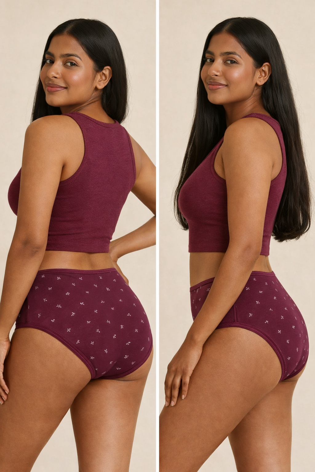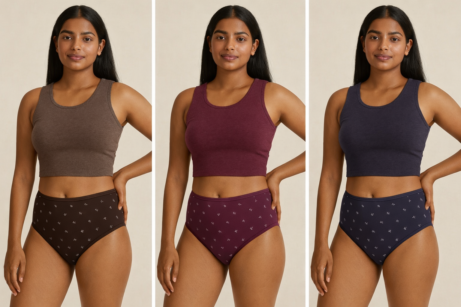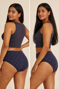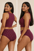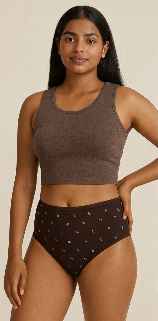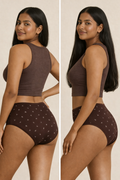The Whisper Knot Collection brings together three beautifully printed brief panties designed for everyday ease. Made in ultra-soft Printed Modal Lycra, each brief melts onto your skin with breathable stretch and gentle comfort. The mid-rise silhouette offers balanced coverage, while the subtle knot-inspired ditsy print adds a touch of quiet charm.
